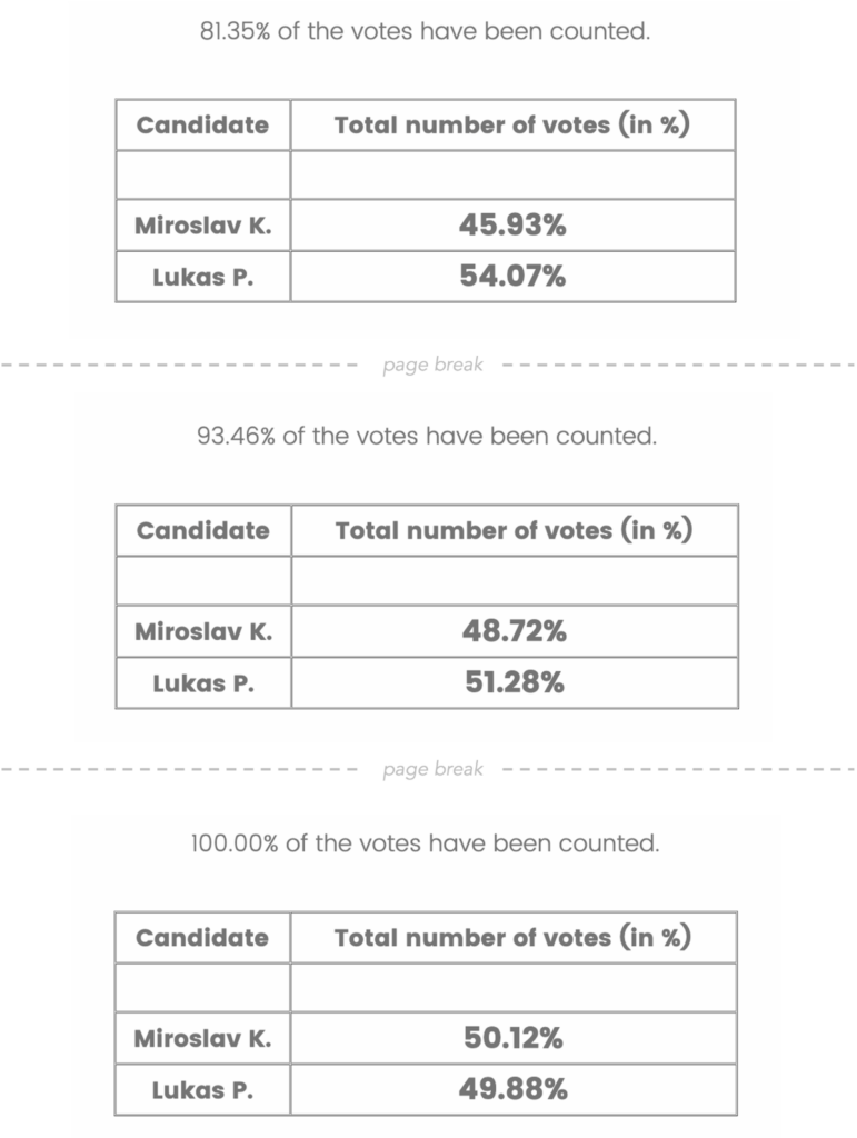 We ran a replication of Study 4 from: Vaz, A., Ingendahl, M., Mata, A., & Alves, H. (2025). “Stop the Count!”—How Reporting Partial Election Results Fuels Beliefs in Election Fraud. Psychological Science, 36(8), 676-688. https://doi.org/10.1177/09567976251355594