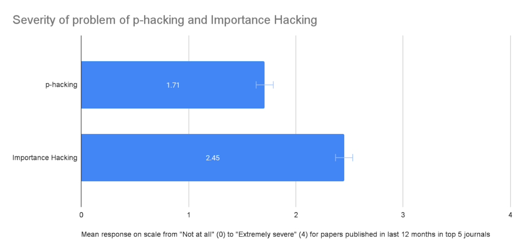 For recently-published studies in top journals, Importance Hacking was seen by academic psychologists as a more serious problem than p-hacking.